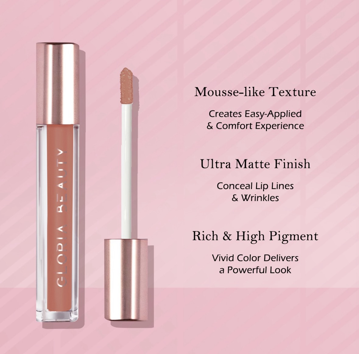 لمسة نهائية مخملية غير لامعة مع تأثير ضبابي ناعم – تبدو الشفاه أكثر امتلاءً ونعومة وامتلاءً.