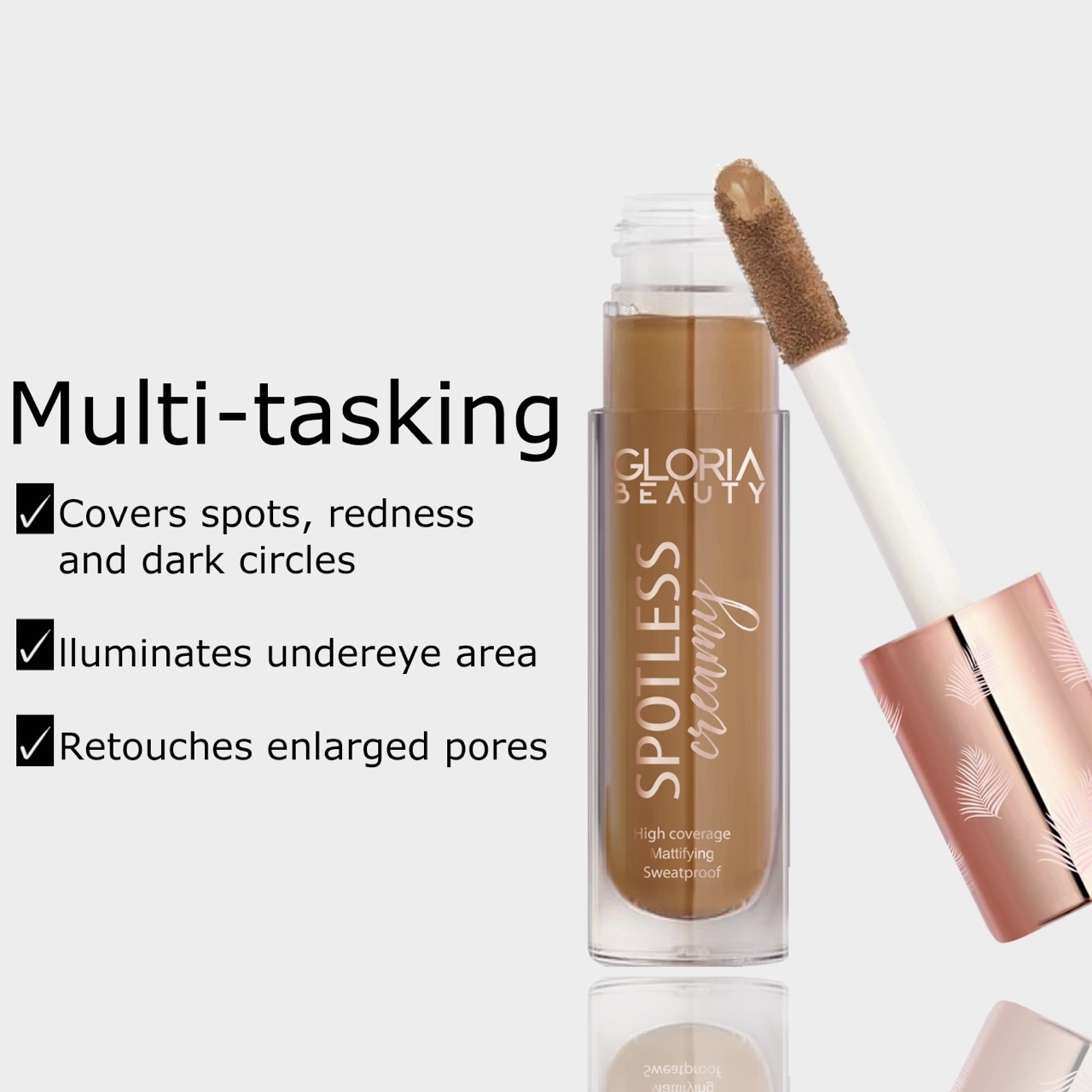 كونسيلر جلوريا بيوتي سبوتليس كريمي كونسيلر عالي التغطية مصمم لإخفاء الشوائب العنيدة والهالات السوداء وغيرها من العيوب بفعالية مع تركيبة عالية التغطية تضمن لكِ تغطية طبيعية وتغطية قصوى بأقل قدر من المنتجات.