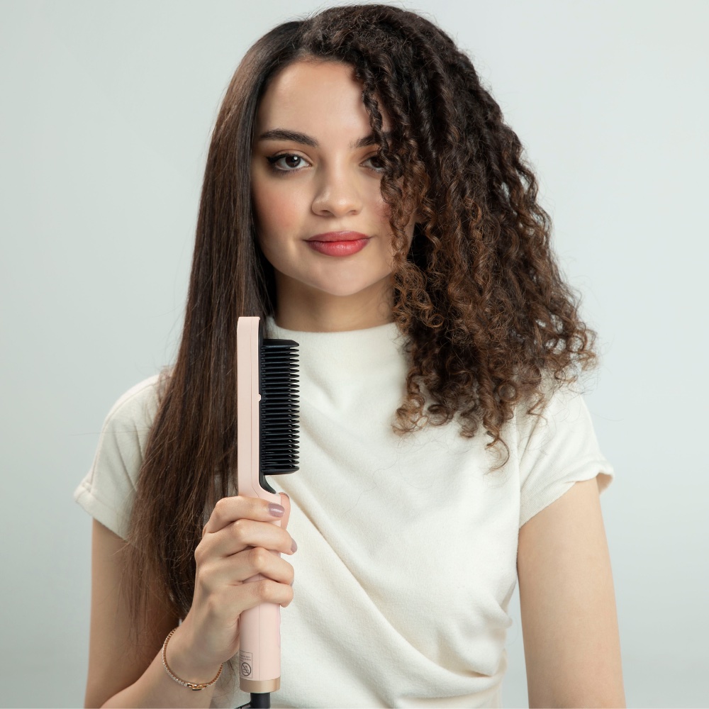 – تم تصميم الفرشاة بصفائح أيونية، وبشكل جديد يسهل عملية فرد الشعر بسلاسة وفي أسرع وقت، ويدوم لوقت أطول. -