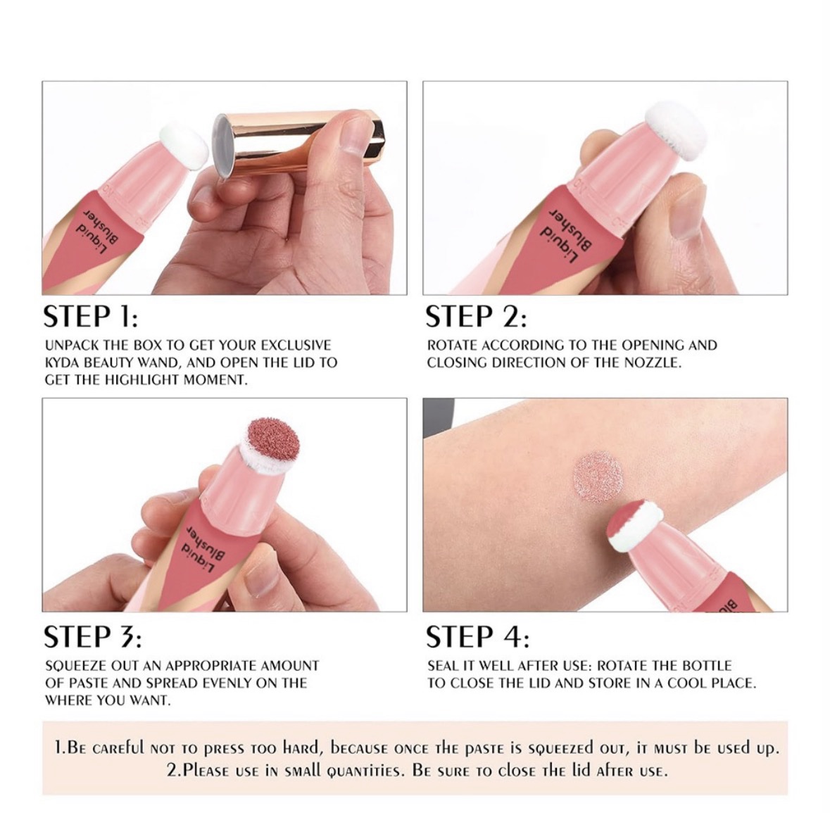 عصا أحمر خدود سائل متوهج مزودة بأداة وضع بطرف وسادة لإضفاء لون مشرق على الوجنتين.